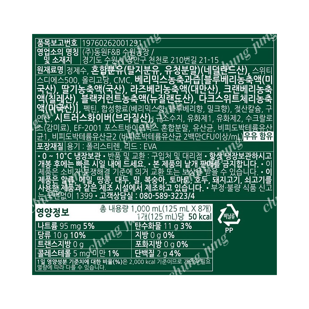 | 상품명 | PYA/비피더스(베리믹스,소와나무,150ml*8입) | 식품유형 | 상세설명참조 |