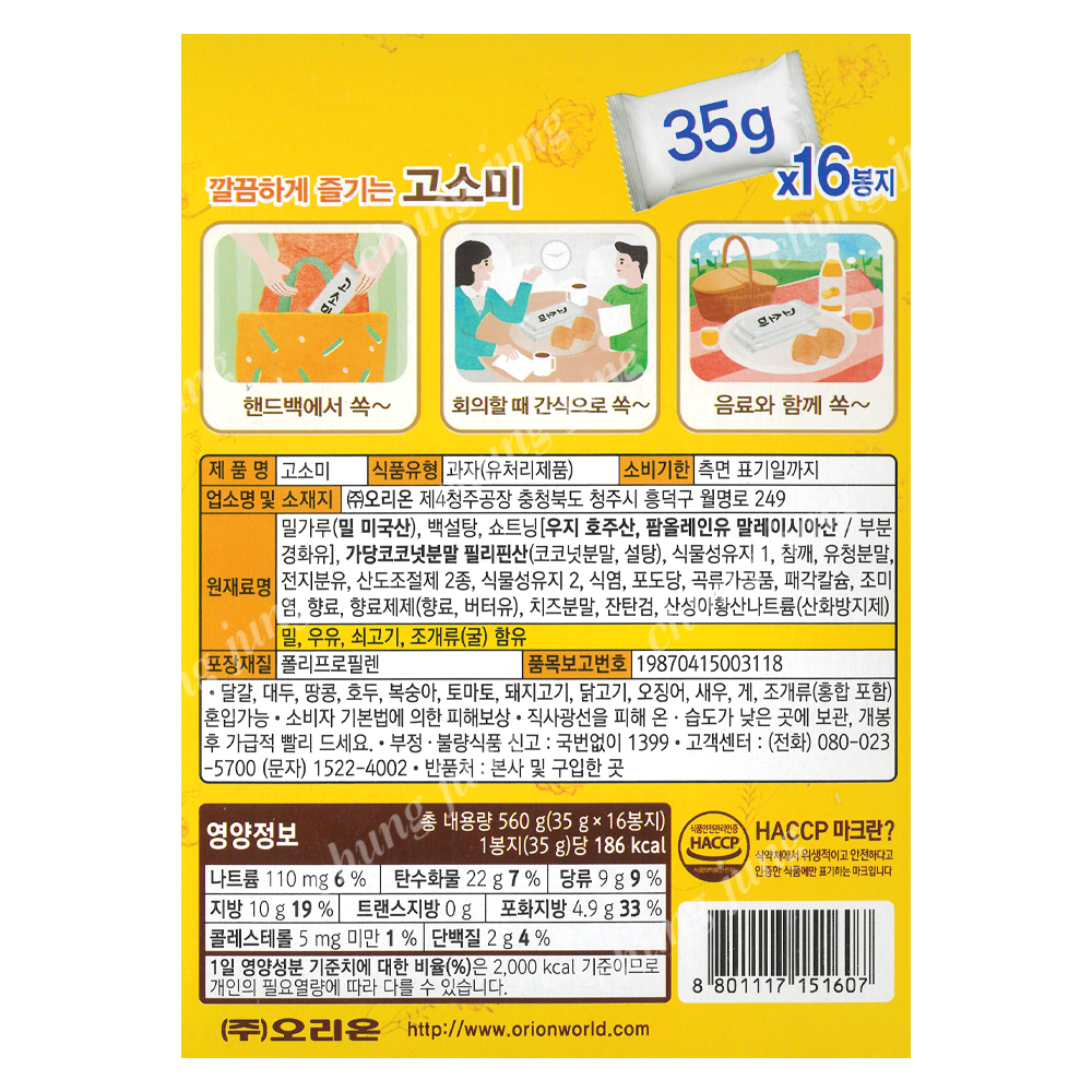 | 상품명 | 과자(고소미,오리온,16입) | 식품유형 | 상세설명참조 |