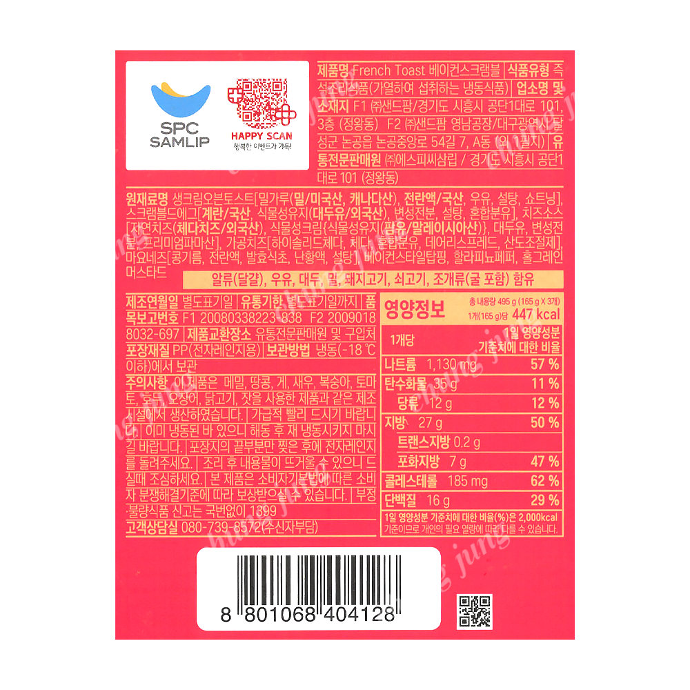 | 상품명 | 냉동빵(베이컨스크램블토스트,삼립,495g) | 식품유형 | 상세설명참조 |