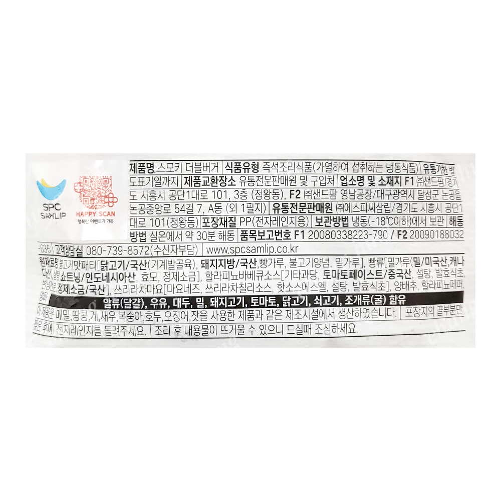 | 상품명 | 냉동빵(스모키더블버거,삼립,170g) | 식품유형 | 상세설명참조 |