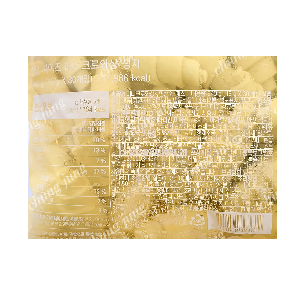 | 상품명 | 냉동빵(미니크로와상생지,삼립,18g*30) | 식품유형 | 상세설명참조 |
