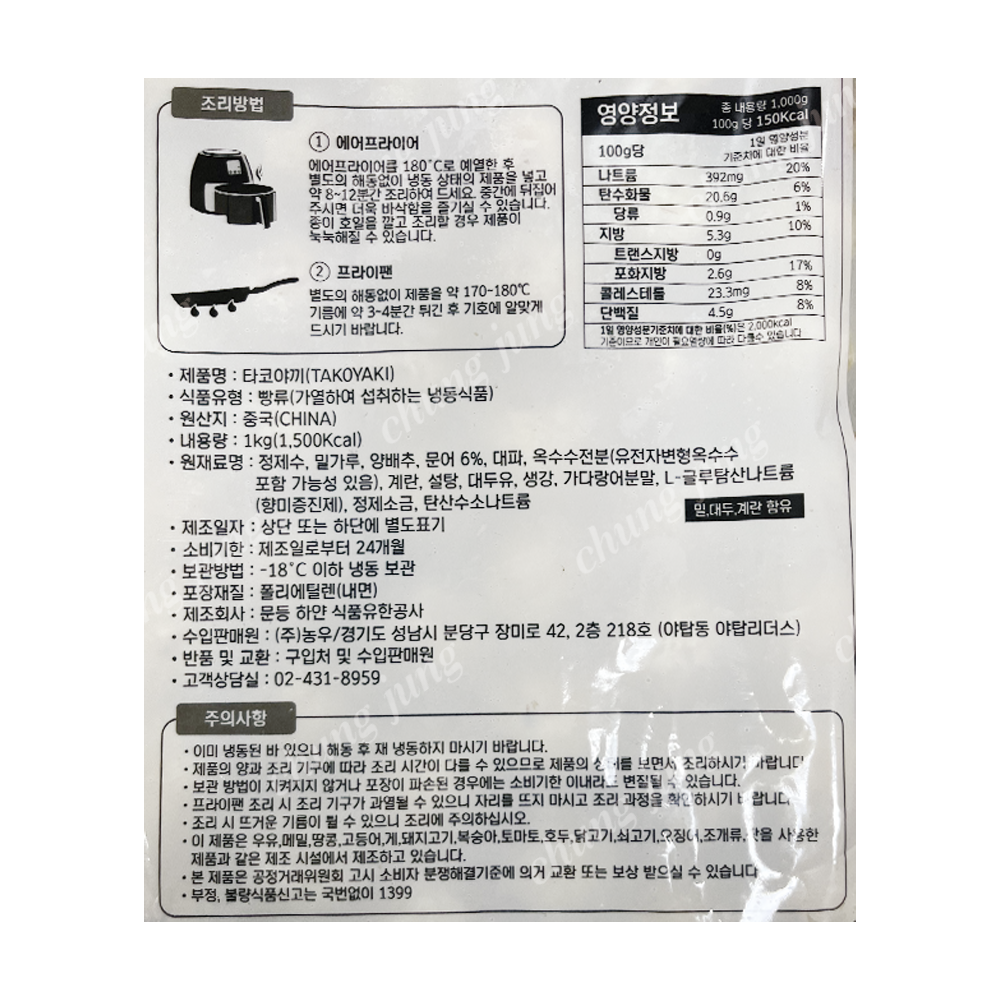 | 상품명 | 타코야끼(냉동,농우,1kg) | 식품유형 | 상세설명참조 |