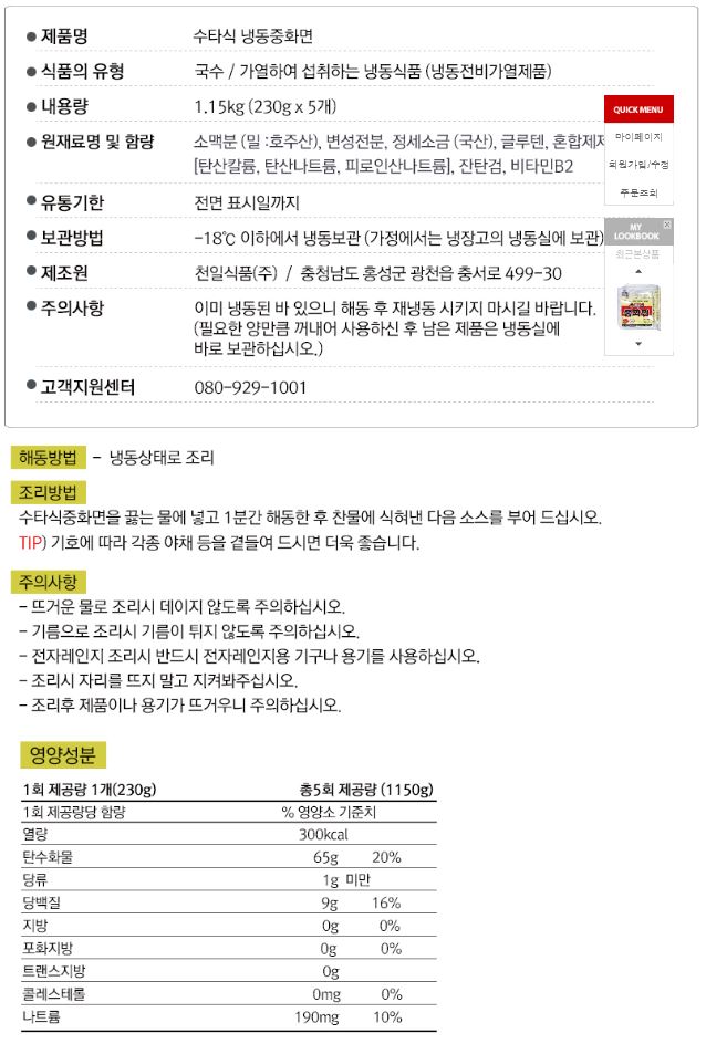 | 상품명 | 수타식냉동중화면 | 식품유형 | 상세설명참조 |