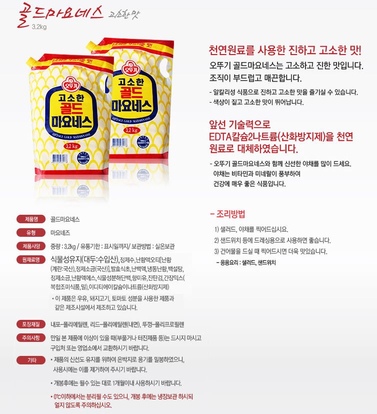 마요네즈(골드,스파우트팩,오뚜기,3.2kg)