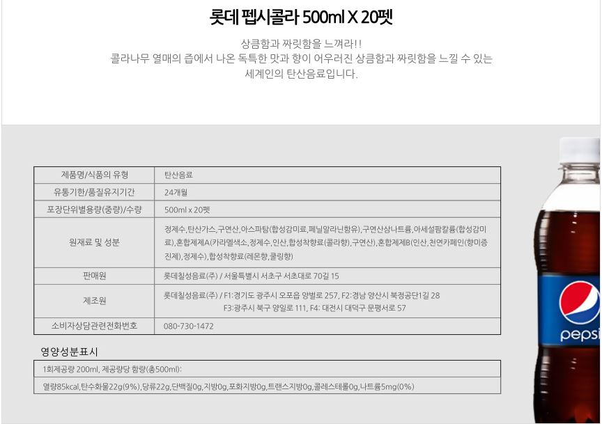 음료(펩시콜라,500ml*20입)