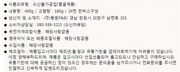 포장단위별 용량(중량),수량 상세설명참조 원재료명 및 함량 상세설명참조