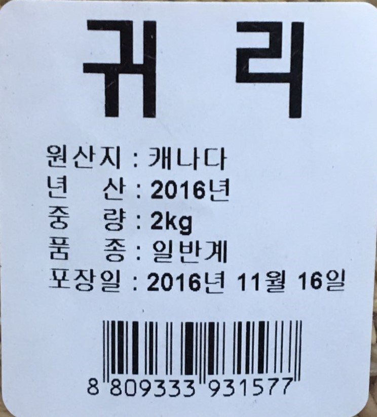 | 농수축산물품질관리법상 유전자변형농산물 표시,지리적 표시 | 캐나다산 | 포장단위별 용량(중량),수량 | 상세설명참조 |