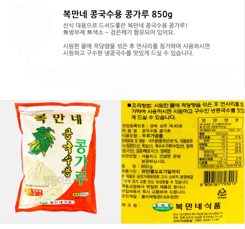 콩가루(복만네,콩국수용,850g)