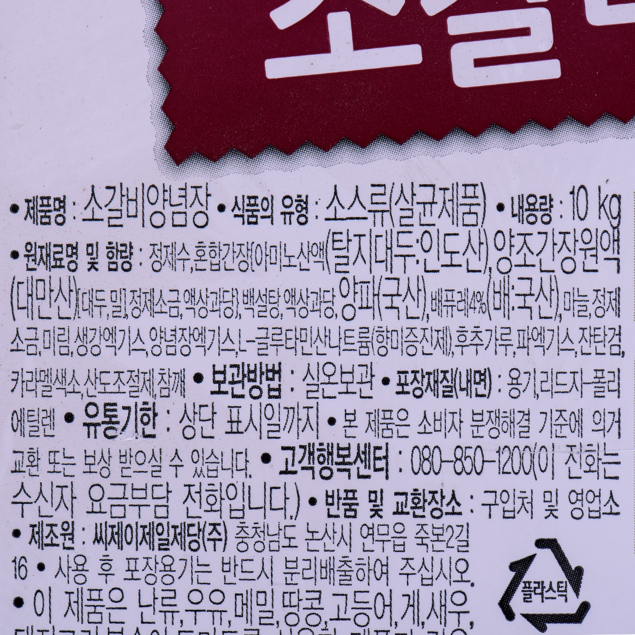 소스(소갈비양념,백설,10kg)