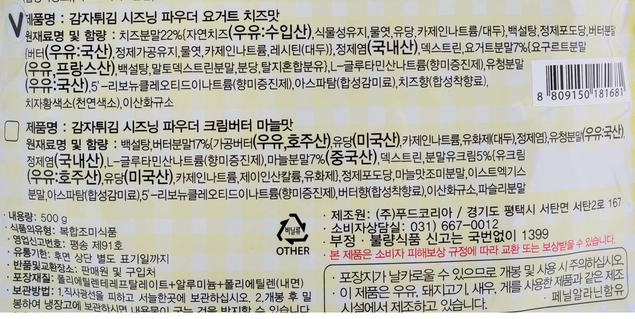 PDN/푸드코리아감자시즈닝(치즈맛)500g