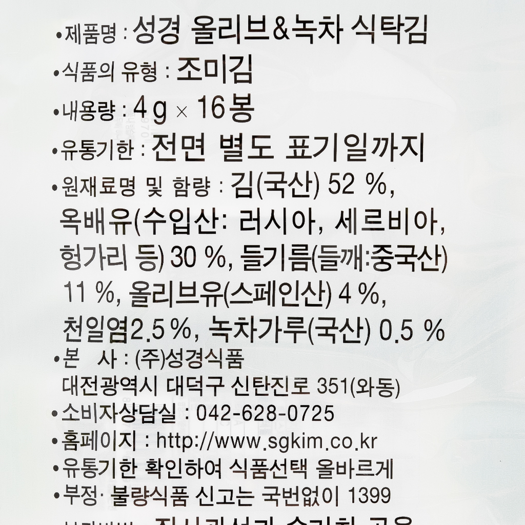김(올리브&녹차,성경,4g*16)