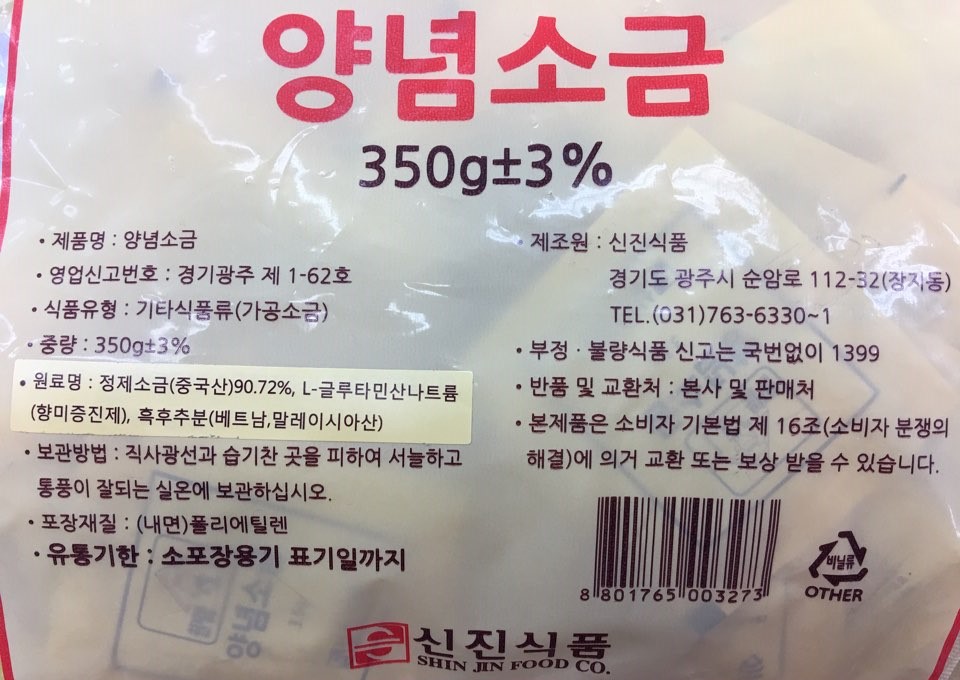 [품절] 소금(일회용양념,한지붕,3.5g*100입)