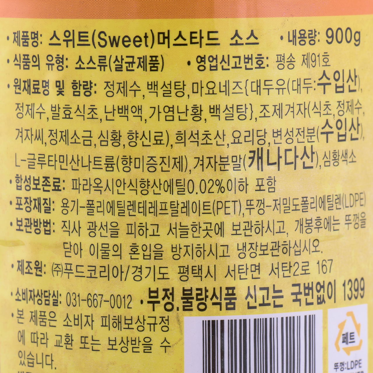 PDN/푸드코리아머스타드900g