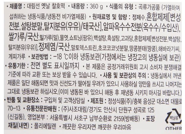 (냉장, 냉동상품의 경우, 반송이 되면 전량폐기처분되므로 교환 및 환불이 되지 않습니다.)