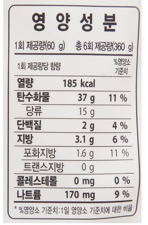 영양성분(식품위생법에 따른 영양성분 표시대상 식품에 한함) 상세설명참조 유전자재조합식품에 해당하는 경우의 표시 해당없음