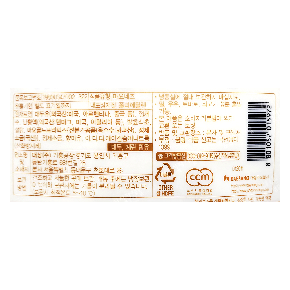 영양성분(식품위생법에 따른 영양성분 표시대상 식품에 한함) 상세설명참조 유전자재조합식품에 해당하는 경우의 표시 해당없음