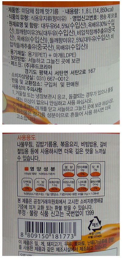 PDN/향미유(참깨맛기름,미담채,1.8L)