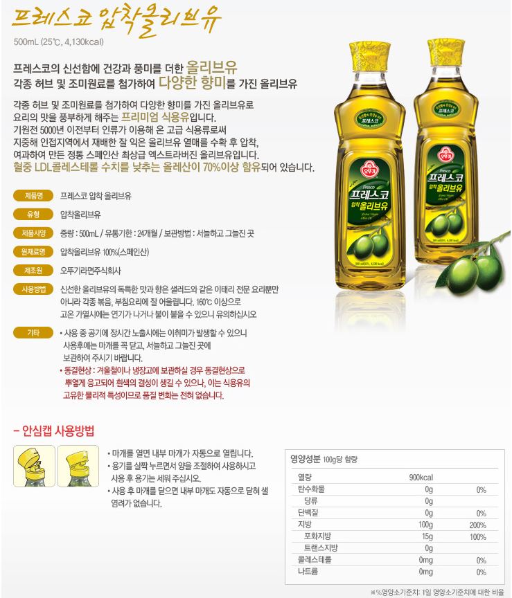 식용유(올리브유,압착,프레스코,오뚜기,500ml)