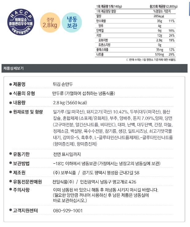| 상품명 | 튀김손만두 | 식품유형 | 상세설명참조 |