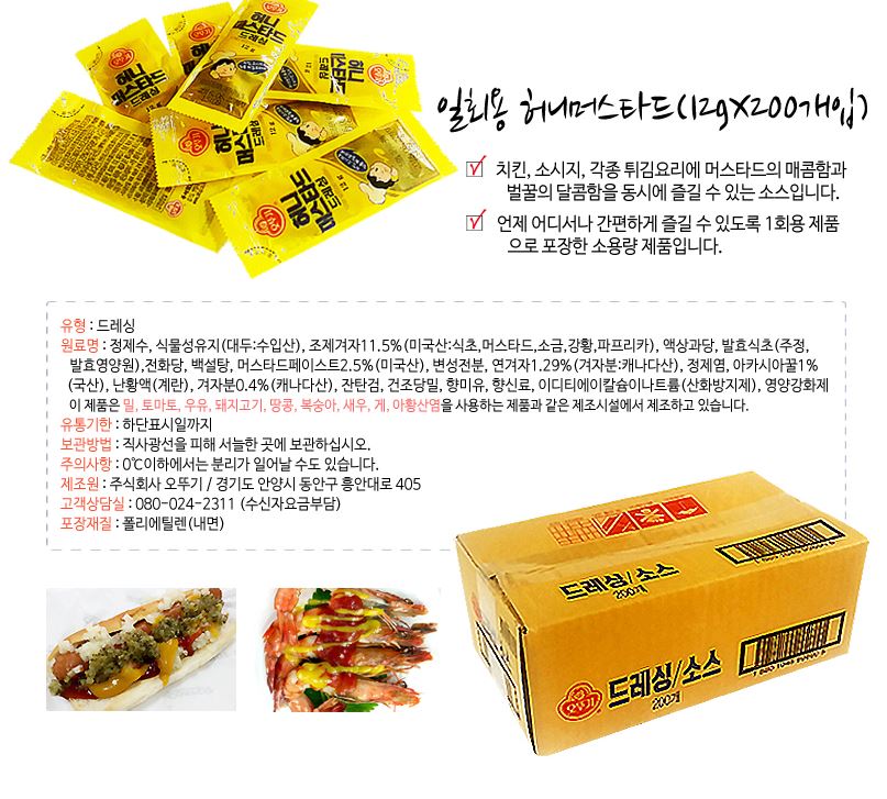 소스(허니머스타드일회용(박스),오뚜기,12g*200입)