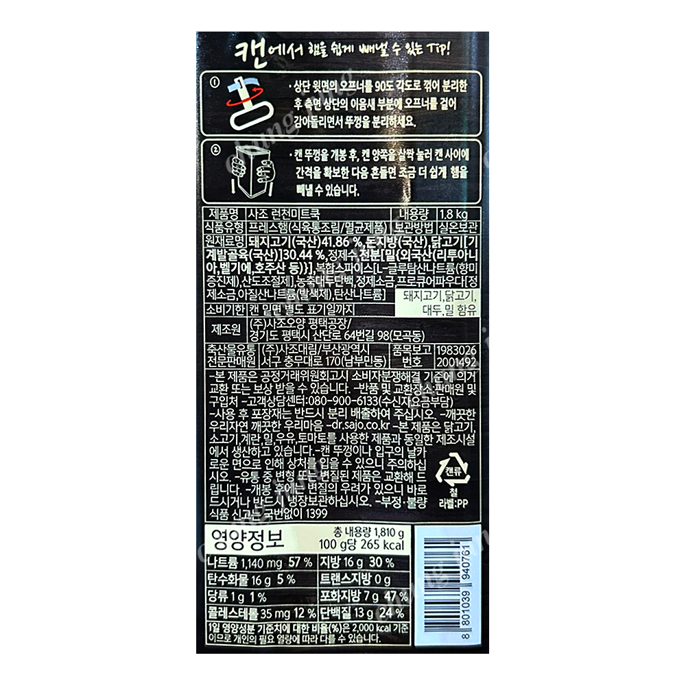 햄(런천미트,사조,1.81kg)