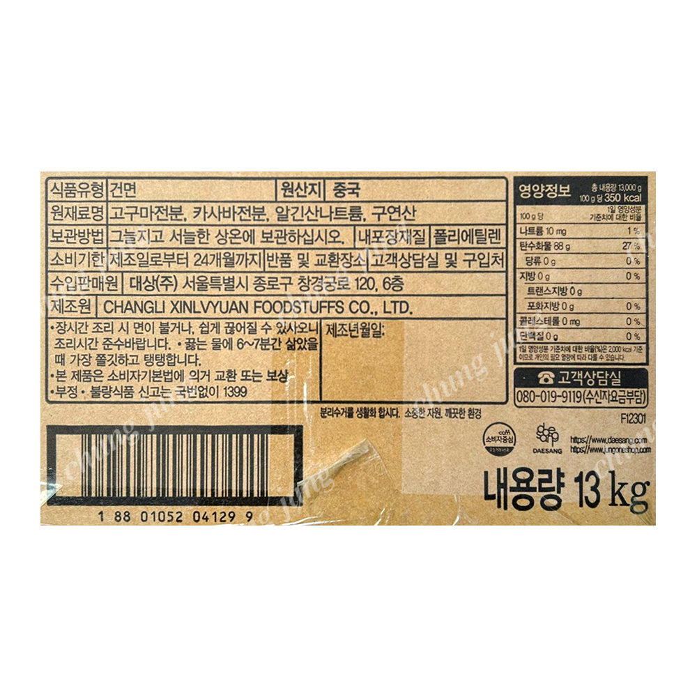 | 상품명 | 쉐프원알찬당면14kg | 식품유형 | 상세설명참조 |