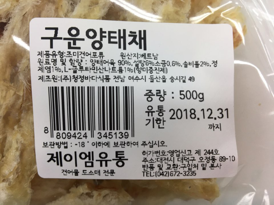 JM/양태채(구운아귀채,500g,베트남(국내가공))