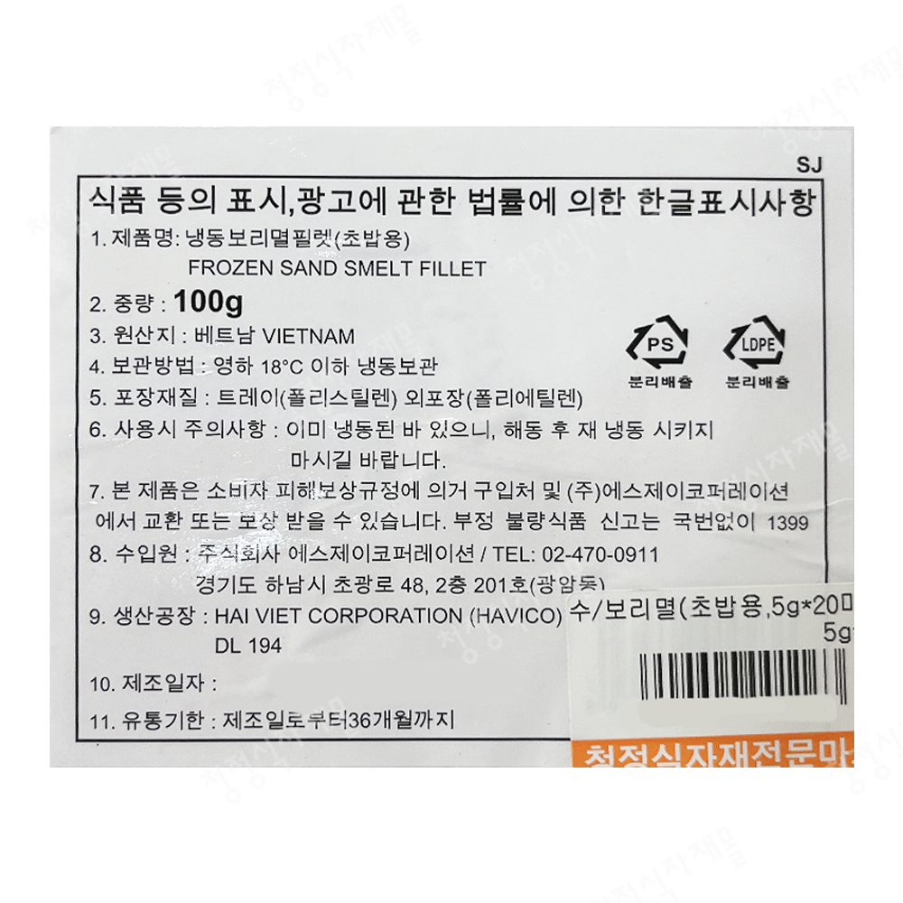 보리멸(초밥용,5g*20미) |