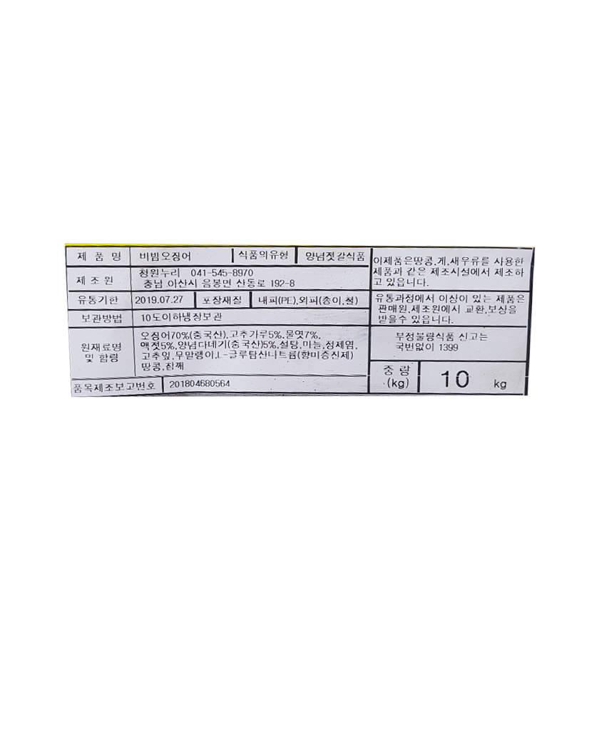 | 상품명 | 비빔오징어(중국산)10kg | 식품유형 | 상세설명참조 |