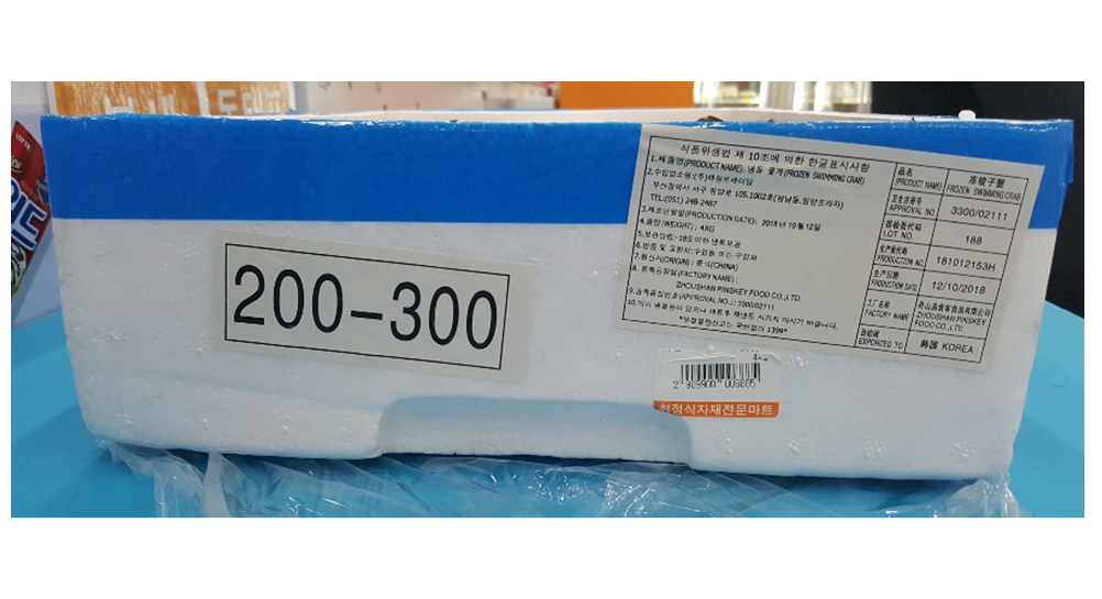 | 상품명 | 꽃게(숫게,200-300,4.5kg,중국산) | 식품유형 | 상세설명참조 |