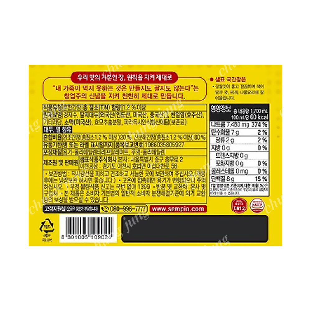 간장(국,샘표,1.7L)