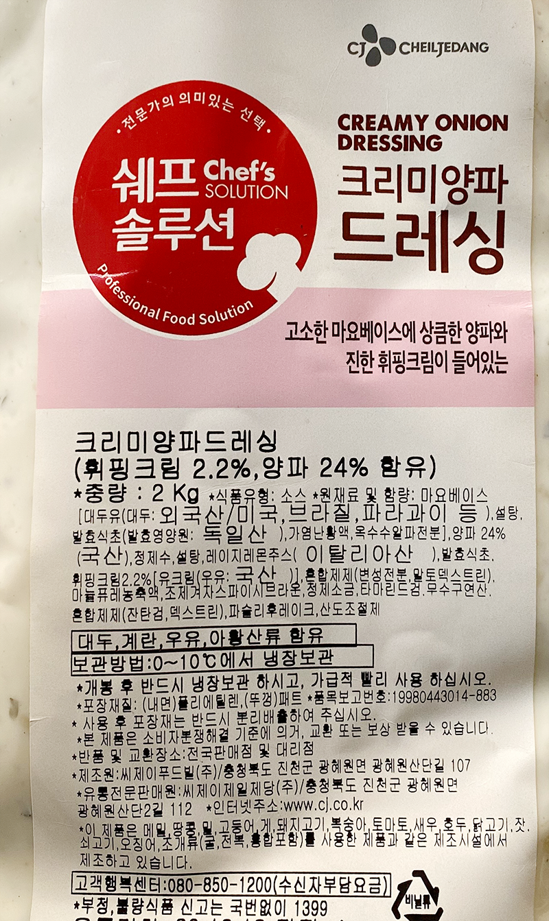 | 상품명 | 드레싱(크리미양파,쉐프솔루션,2kg) | 식품유형 | 상세설명참조 |