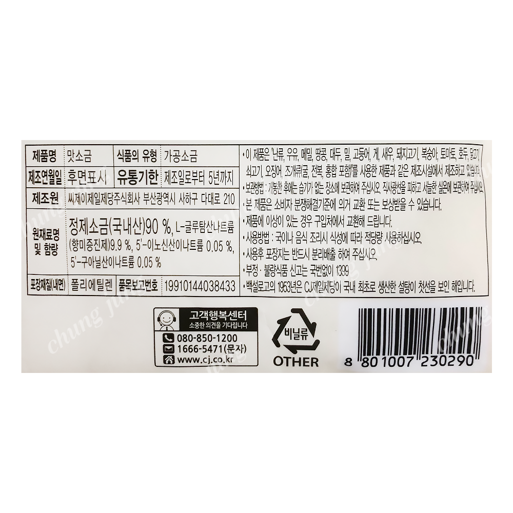 소금(맛,백설,500g)