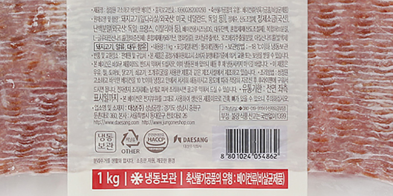 | 상품명 | 청정원고소바삭베이컨1kg | 식품유형 | 상세설명참조 |