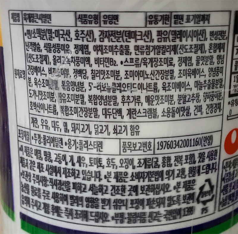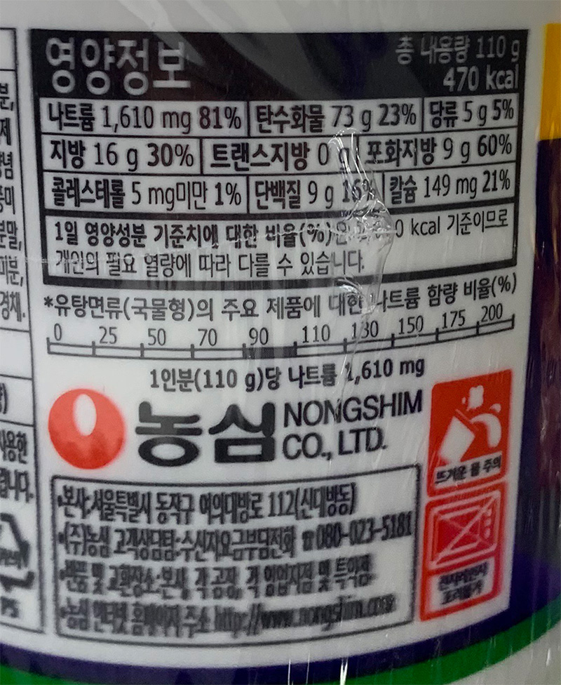 | 상품명 | 컵라면(육개장큰사발,농심,110g) | 식품유형 | 상세설명참조 |