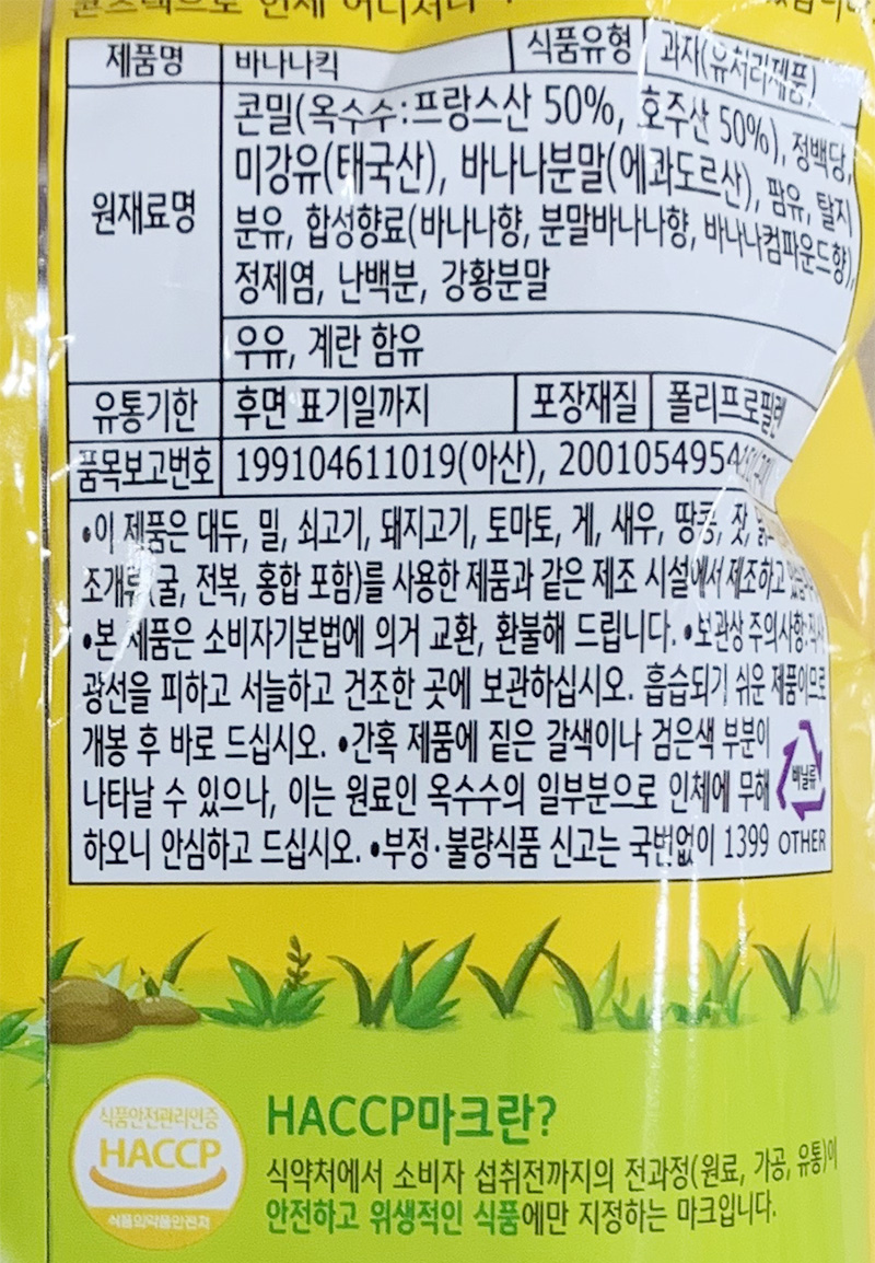 | 상품명 | 과자(바나나킥,농심,75g) | 식품유형 | 상세설명참조 |