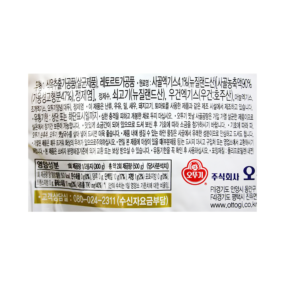 | 상품명 | 오뚜기옛날사골곰탕국물500ml | 재질 | 상세설명참조 |