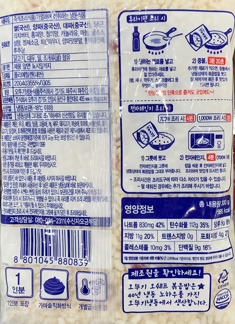 | 상품명 | 볶음밥(만능,오쉐프,300g) | 식품유형 | 상세설명참조 |