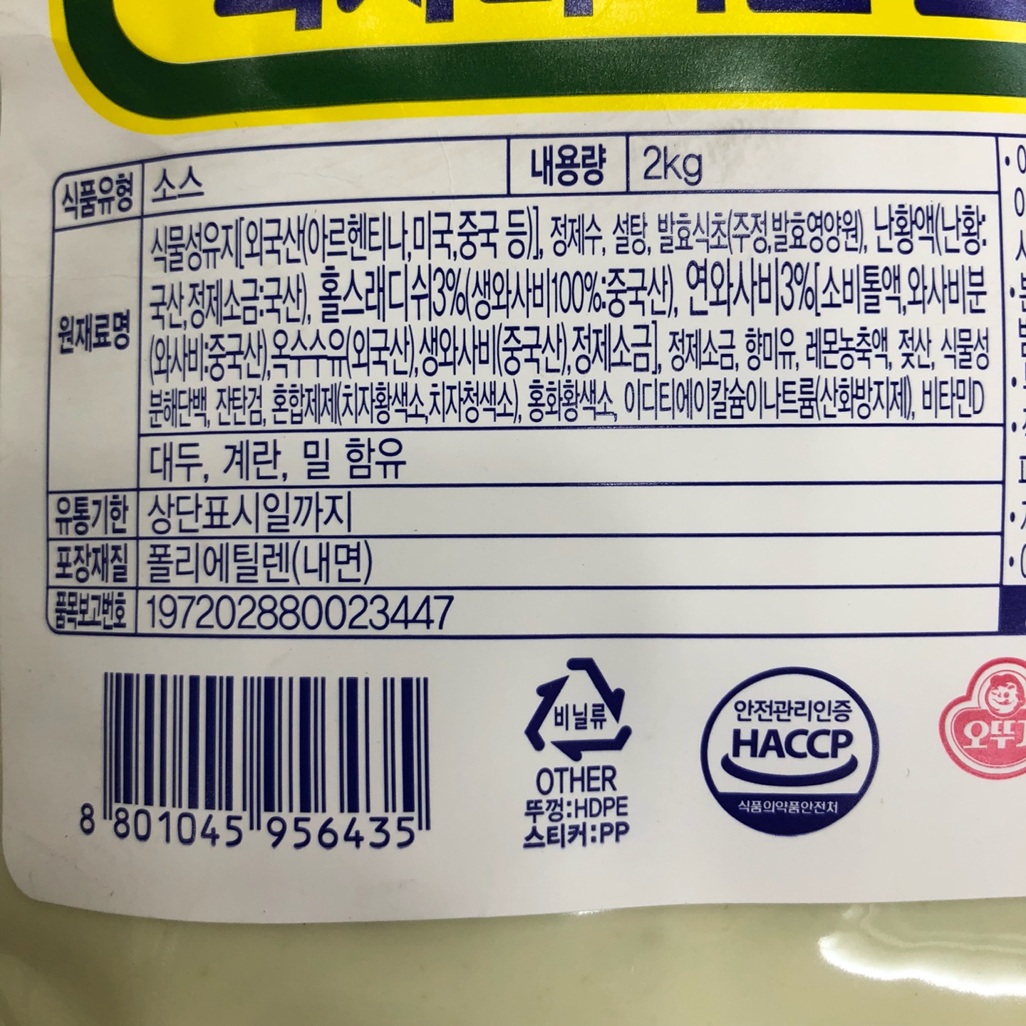 드레싱(와사비마요,오쉐프,2kg)