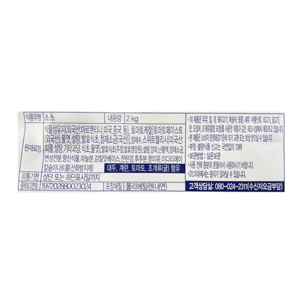 | 상품명 | 드레싱(1000아일랜드,오뚜기,2kg) | 식품유형 | 상세설명참조 |
