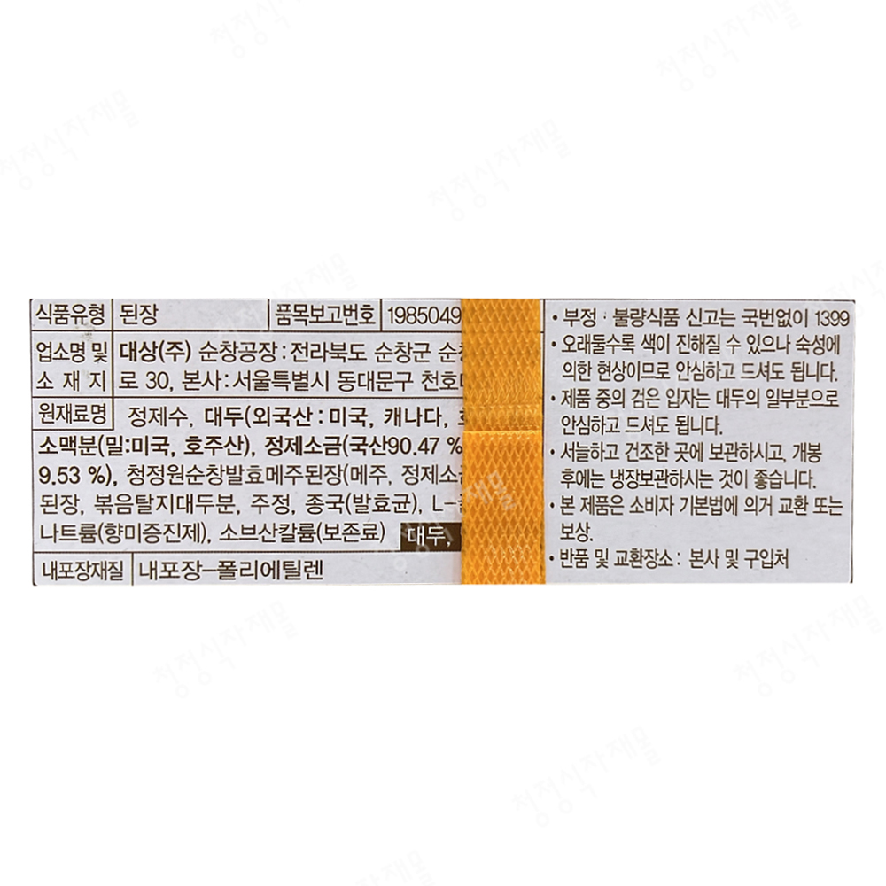 | 상품명 | 된장(진,재래식,청정원,14kg) | 식품유형 | 상세설명참조 |