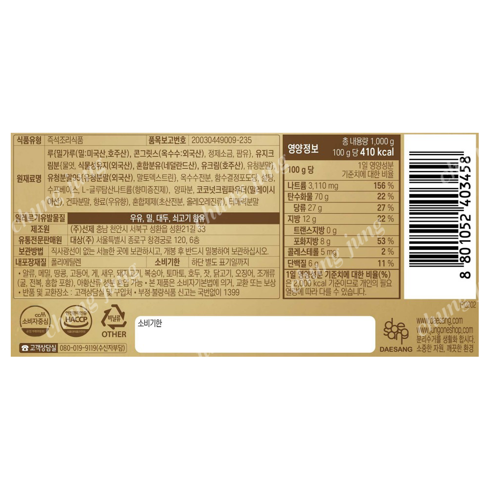 | 상품명 | 스프(크림,청정원,1kg) | 식품유형 | 상세설명참조 |
