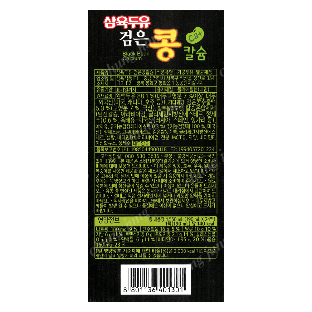 두유(검은콩칼슘,삼육,190ml*24입)