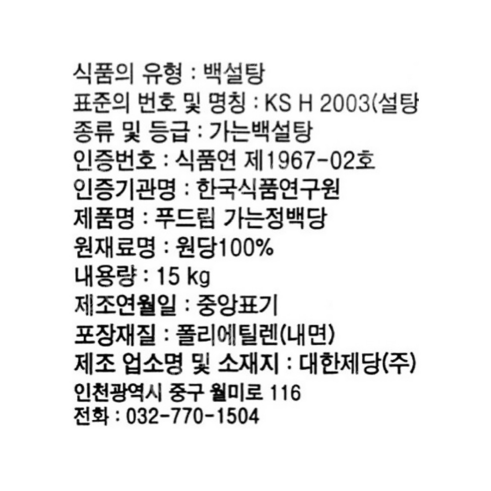 설탕(정백당하얀,푸드림,15kg) |