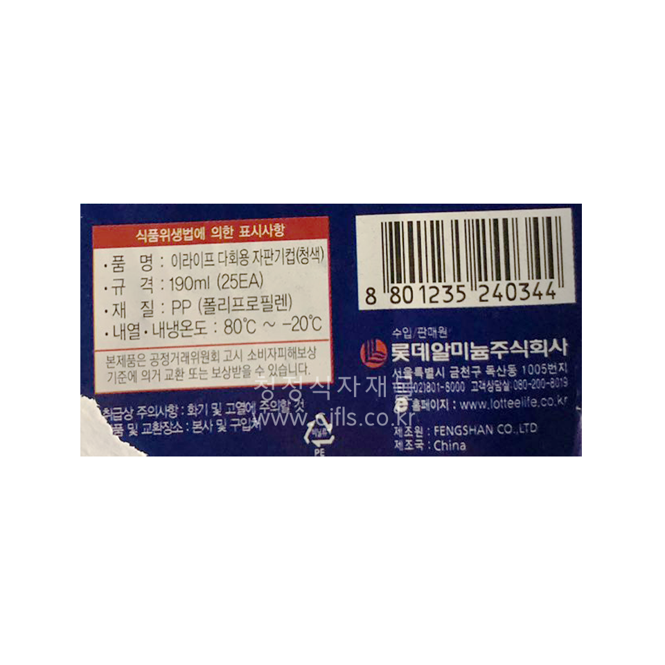 일회용기(자판기컵(청색),190ml*25입) |