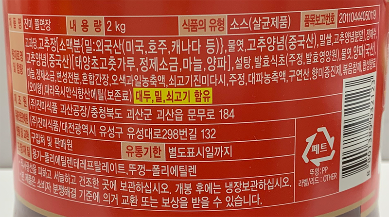 소스(쫄면장,진미,2kg) |