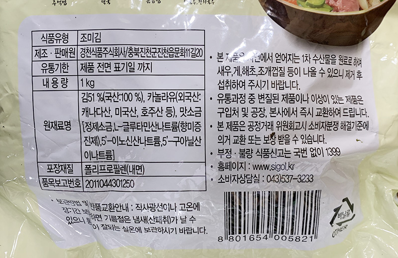 | 상품명 | 김가루(시골,경천,1kg) | 식품유형 | 상세설명참조 |