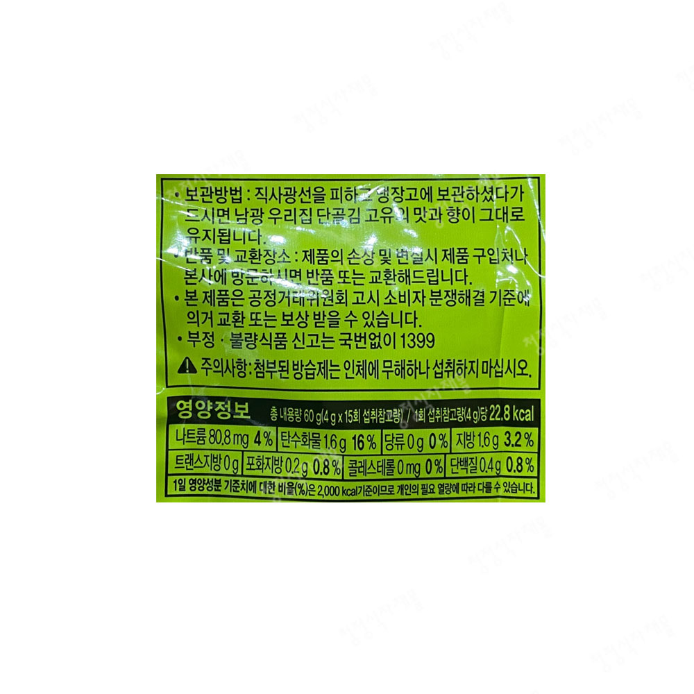 | 영양성분(식품위생법에 따른 영양성분 표시대상 식품에 한함) | 상세설명참조 | 유전자재조합식품에 해당하는 경우의 표시 | 해당없음 |