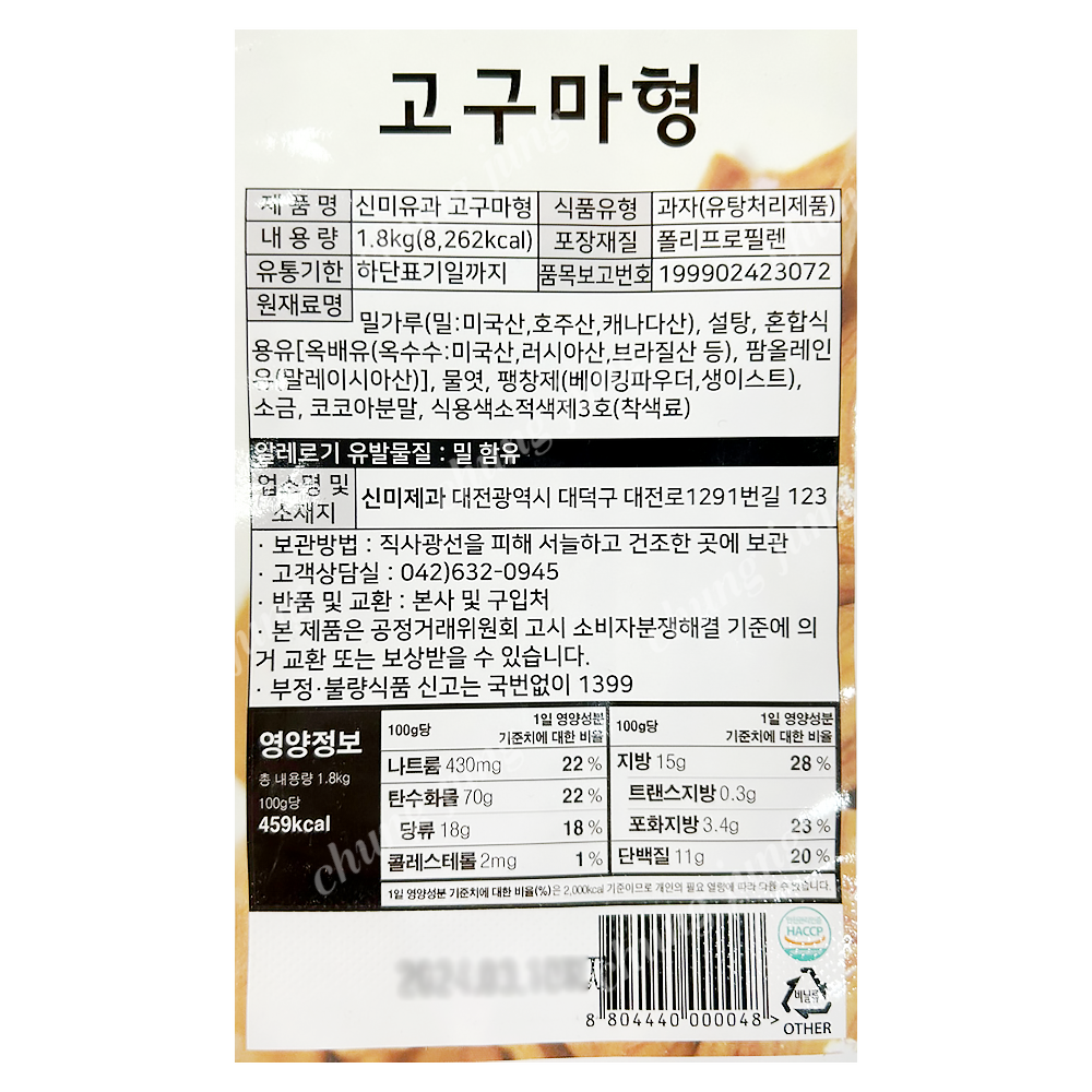 PDY/스낵(고구마형,신미유과,1.8kg)