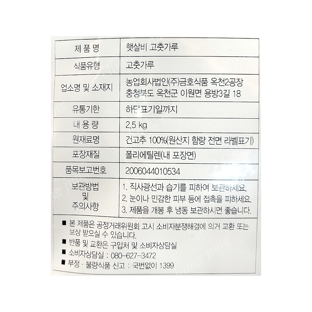 고춧가루(조미용,햇살비,2.5kg,중국산)